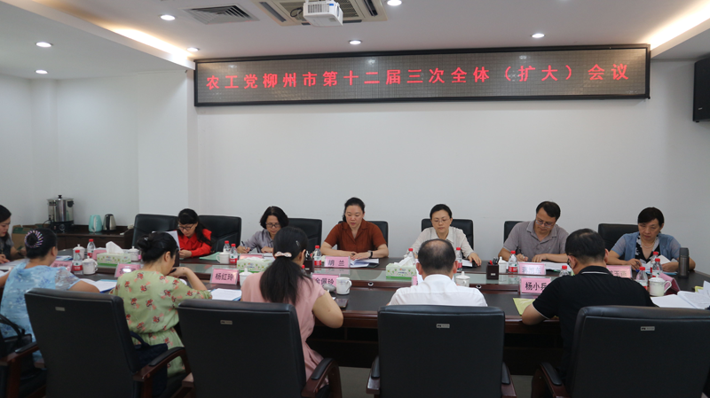 2021年7月30日下午,农工党柳州市第十二届委员会第三次全体(扩大)会议在农工柳州市委机关会议室召开,农工党柳州市委主委、市审计局局长胡兰出席会议并讲话,副主委李晶晶、宁雪坚、蒋旭东以及市委常委、委员、各基层组织负责人和机关干部参加会议。