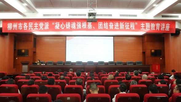 为切实加强中共二十大精神思想政治引领,用党的创新理论凝心铸魂,9月6日,柳州市各民主党派开展“凝心铸魂强根基、团结奋进新征程”主题教育讲座,邀请中共柳州市委党校副教授、党史党建教研室副主任齐自琨作《举旗定向 用新的伟大奋斗创造新的伟业》专题报告,各民主党派主委、副主委、机关干部以及基层成员近200名成员参加讲座。