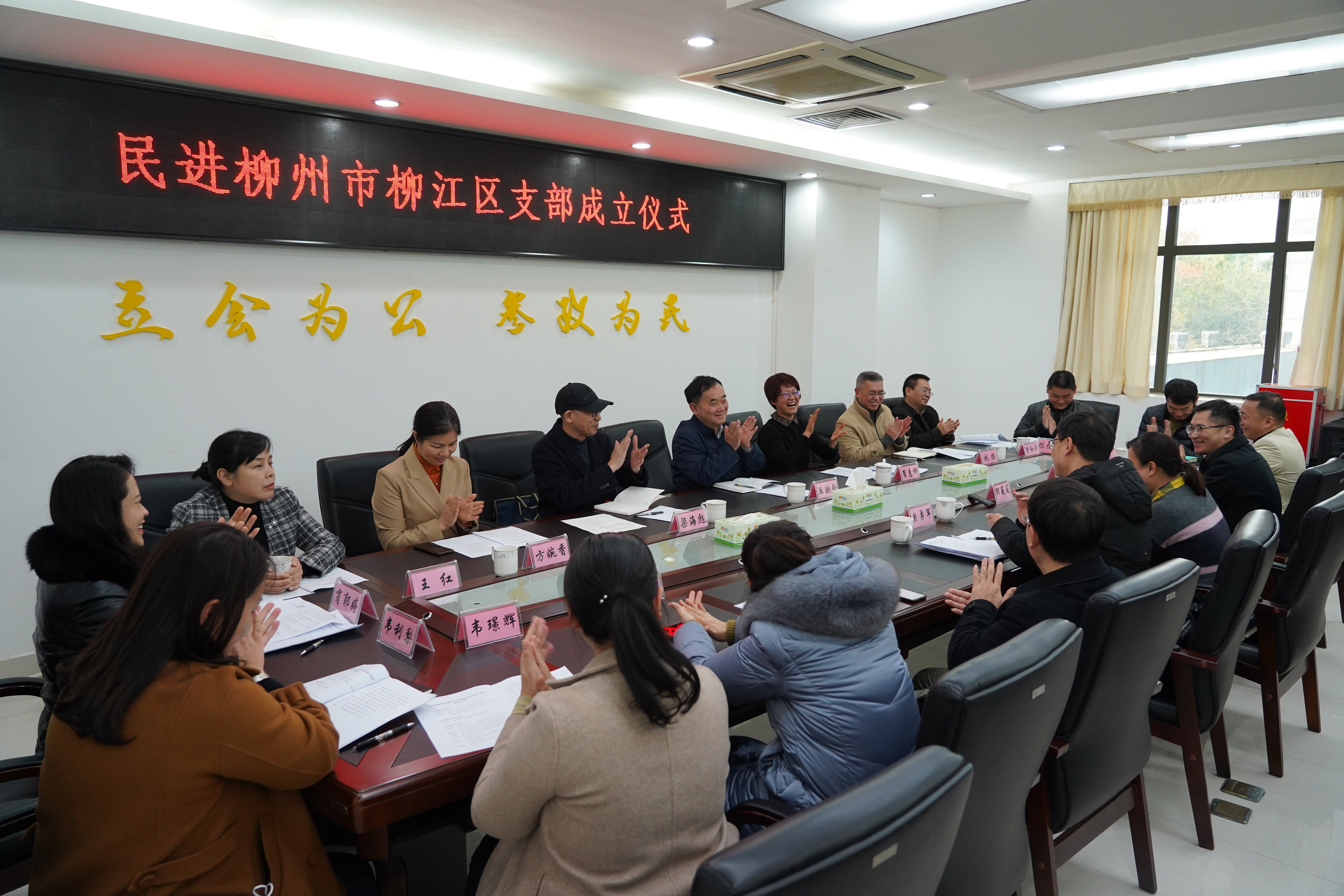 2月16日下午,民进柳州市柳江区支部成立大会在机关会议室隆重举行,民进广西区委副主委丘映含,民进柳州市委主委崔惠柳,中共柳州市委统战部副部长、市台办主任赵扬,民进广西区委会内部监督委员会委员梁海彪,中共柳江区委常委、统战部部长方婉香,民进柳州市委班子成员,民进柳州市委常委、监督委员会代表以及柳江区支部全体会员参加会议。副主委肖郭婷主持会议。
