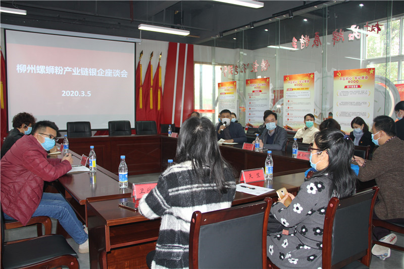 3月4日及5日,为帮助柳州螺蛳粉企业尽快复工复产、渡过难关,柳州市非公办、市发改委分别在鱼峰区和柳南区两个螺蛳粉产业园,联合组织召开两场“螺蛳粉产业链”银企座谈会,邀请建设银行有关负责人为螺蛳粉企业开展融资专题辅导及金融产品推介,邀请专业律师为企业做法律专题辅导并现场答疑解惑。柳北区、鱼峰区、柳南区、柳江区共20多家螺蛳粉行业企业参加座谈会。