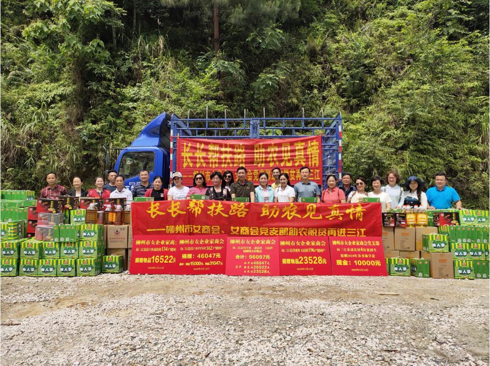 5月12日—13日,市委统战部副部长、市工商联党组书记莫朝晖带队,组织民营企业、商协会赴三江县开展“百企扶百村”精准帮扶活动。在良口乡捐赠现场,柳州市女企业家协会为结对帮扶的良口乡归斗村、滚良村以及洋溪乡玉民村捐赠了食用油、面条、螺蛳粉等价值9.7万元的生活物资和慰问金,现场采购了贫困村群众生产的土豆2600斤,并达成了长期定点采购贫困村生产的农产品的意向。在同乐乡归亚村,柳州市青年企业家协会会长企业、柳州市易得科技公司与该村签定了结对帮扶协议,捐赠了价值5000元的生活物资,现场认购了当地的云耳、土豆等农产品,并决定长期定点采购归亚村生产的农产品,同时,易得科技公司表示可为村民提供30-50个就业岗位。在同乐乡良冲村,柳州市江苏商会为该村捐赠了价值1.7万元的学习用品和慰问金,并决定实施产业扶贫,在良冲村发展灵芝产业。