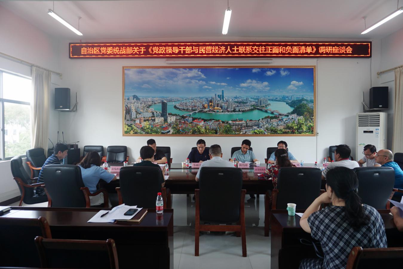 5月27日,自治区党委统战部二级巡视员韦雨江一行4人来柳召开调研座谈会就党政领导干部与民营经济人士联系交往正面和负面清单工作开展专题调研。市委统战部副部长、市工商联党组书记莫朝晖主持会议。