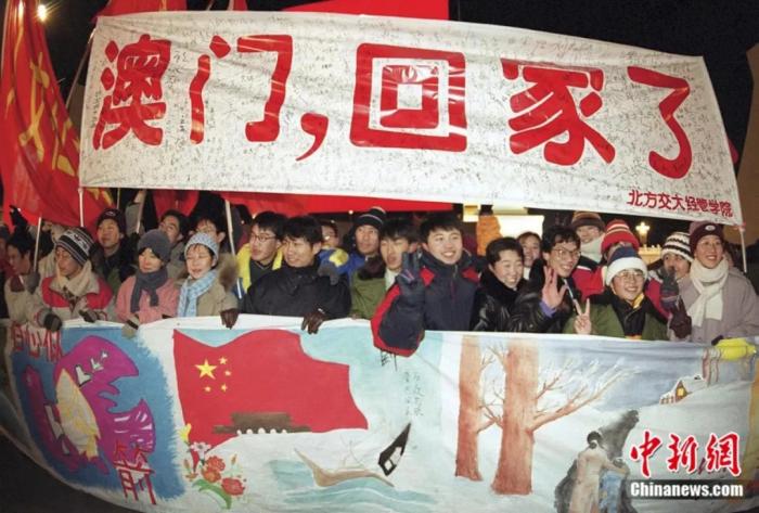 来自北京高校的学生打出“澳门,回家了”的横幅。