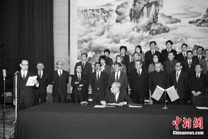 1987年3月,中葡在北京草签声明。(<a target='_blank' href='http://www.chinanews.com/'>中新社</a>记者 贾国荣摄)