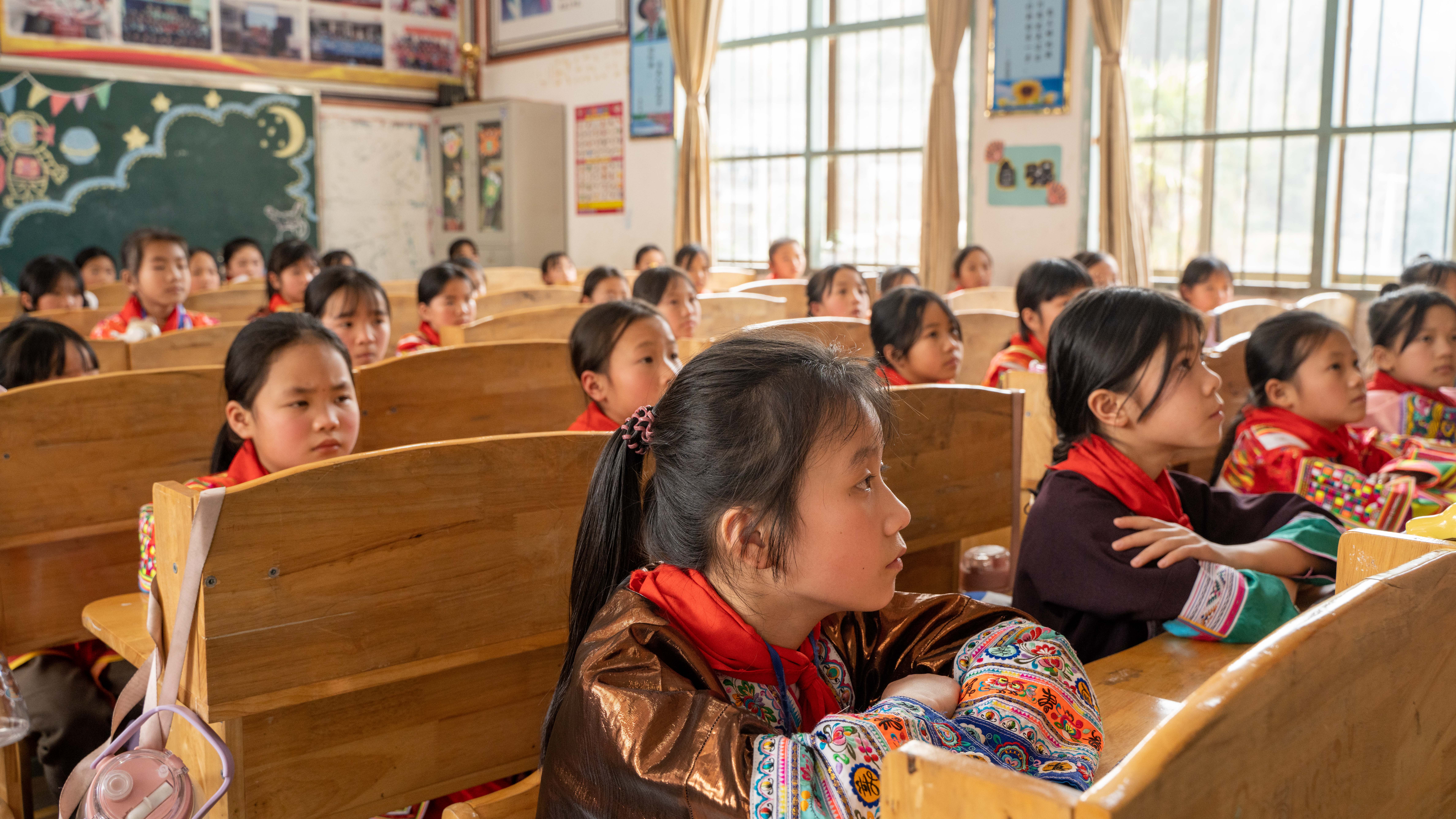 白云乡中心小学“红瑶女童班”学生认真学习民族知识