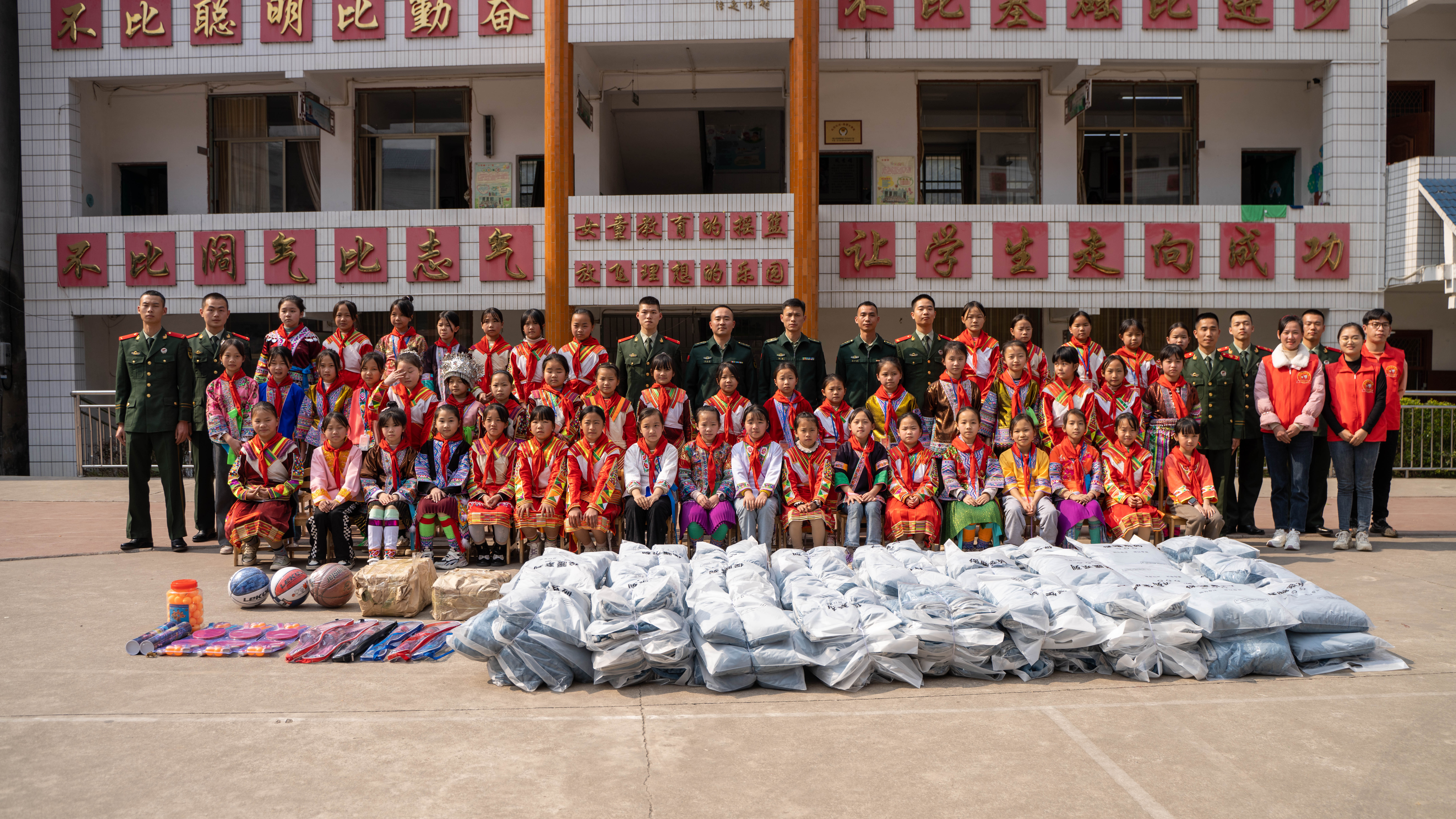 活动当天,武警广西总队柳州支队执勤五大队融水中队向白云乡中心小学捐赠了书籍、衣服、体育用品等物资,并组织开展“弘扬雷锋精神,争当雷锋传人”签名活动。
