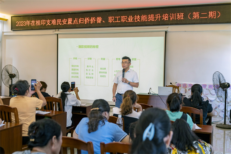近日,由广西壮族自治区接待安置印支难民办公室主办、柳城华侨农场协办的2023年在桂印支难民安置点归侨侨眷、职工职业技能提升培训班在柳城华侨农场举办。柳城华侨农场160名归侨侨眷、职工群众参加了培训。