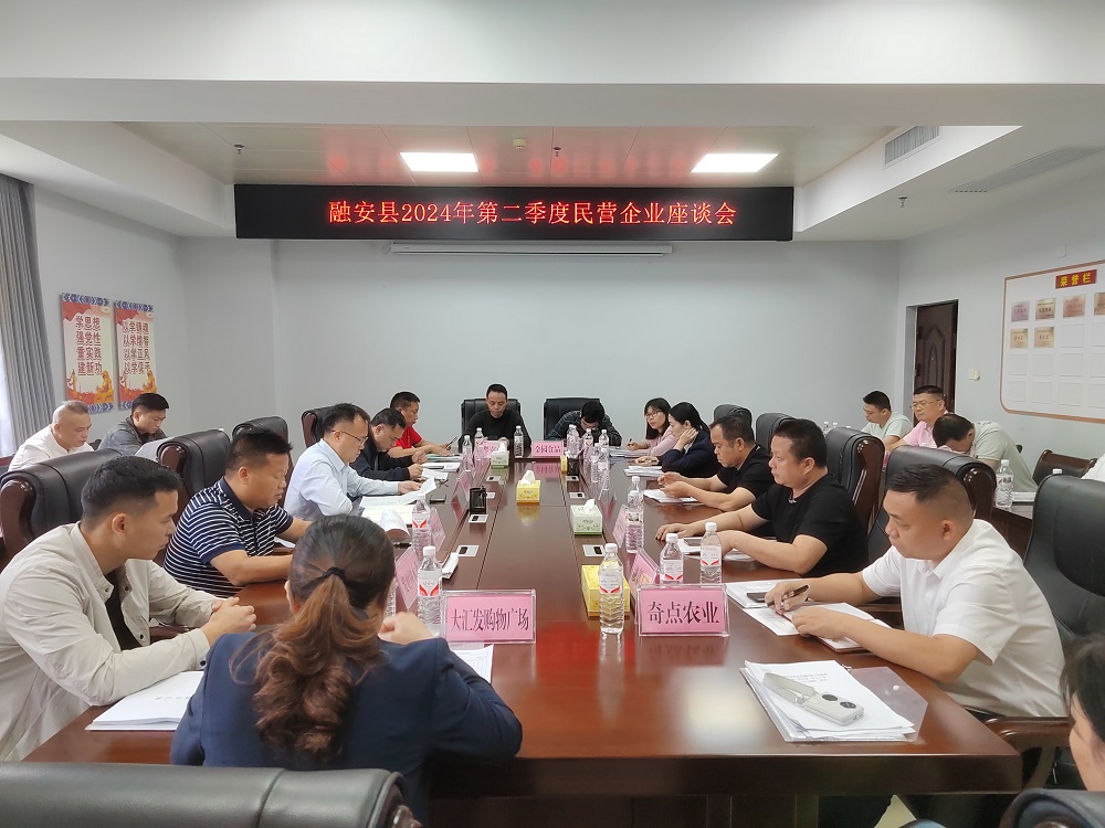 4月18日,融安县召开2024年民营企业第二季度座谈会,面对面与企业交流,畅叙发展良策,政企同心推动民营经济高质量发展。县委常委、统战部部长曾凡旺出席会议并讲话,县人大常委会副主任、工商联主席朱炳文主持会议,县人民政府副县长陈远昭、20家民营企业负责人代表参加会议。