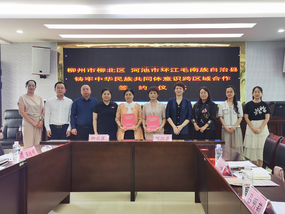 近日,柳北区民族宗教事务局与环江毛南族自治县民族宗教事务局签订《柳北区环江毛南族自治县铸牢中华民族共同体意识跨区域合作协议》,两地将聚焦铸牢中华民族共同体意识,在经济、教育、文化旅游、乡村治理、平安建设等领域开展常态化交往交流交融活动,共同推动“五个家园”建设。柳北区委常委、统战部部长韦婷婷,环江毛南族自治县委常委、统战部部长、副县长谭淑方等参加签约仪式。