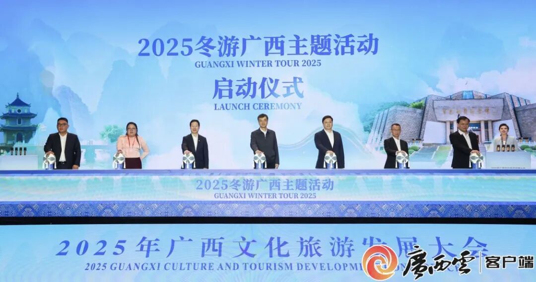 11月24日,自治区党委、政府在百色市召开2025年广西文化旅游发展大会。自治区党委书记、自治区人大常委会主任陈刚,自治区主席韦韬同与会嘉宾共同启动“2025广西旅游年·冬游广西”主题活动。广西云-广西日报记者 何学俏 摄