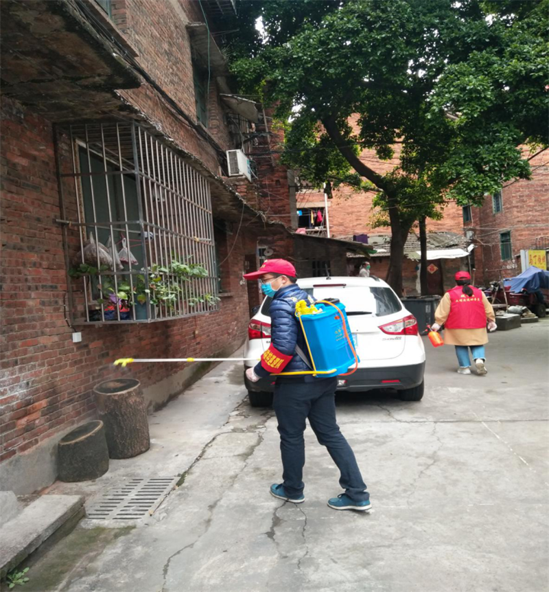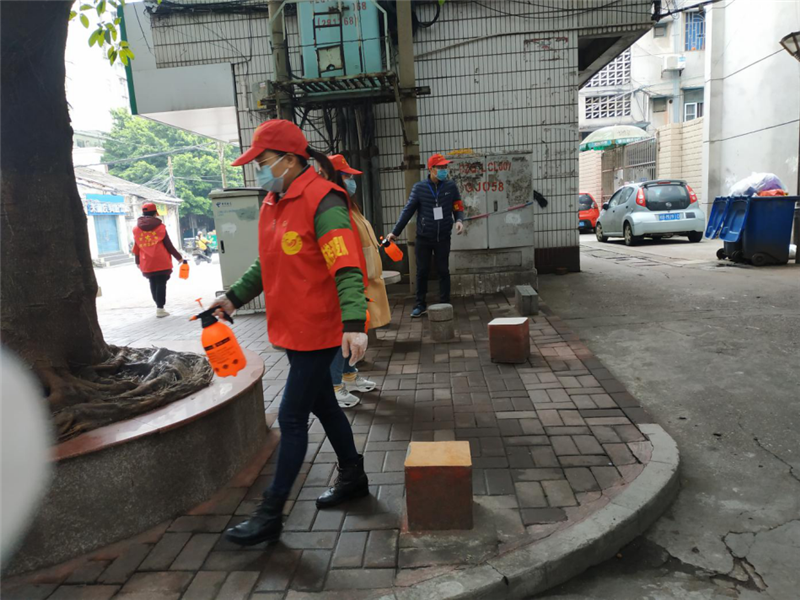 图为:党员们在对西门社区公共环境进行消杀