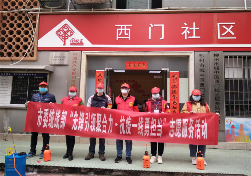 图为市委统战部党支部首批4名党员与社区工作人员列队出征
