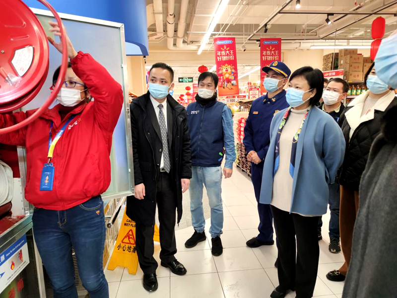 在华润万象城,邓娟娟对询问了超市内商品价格情况,随机抽检了灭火器、水带、水枪等消防器材配备情况,并对市场工作人员对消防器材的使用进行了现场检查。邓娟娟指出,当前疫情形势依然严峻,各有关部门要加强产品质量和食品安全监管,加强冷链环节防控,保持节日期间物价稳定和良好市场环境,要加强安全监管,物品摆放要合理规划,为消防营救留出足够的“生命通道”。现正值春节采买高峰期,各经营场所要落实落细疫情防控措施,在确保群众舌尖上安全的同时,也要让群众健康平安迎新年。