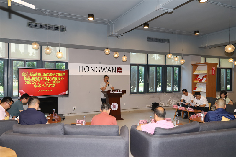 7月10日,全市统战理论政策研究课题推进会在柳州工学院召开,会议合并开展了柳州工学院党外知识分子“求知·问学”学术沙龙活动。会议及活动围绕统战理论政策研究暨社会科学研究方法邀请有关专家学者做专题报告,对今年全市统战理论政策研究重点委托课题进行研讨交流。全市统战理论政策研究特约研究员、重点委托课题组负责人和柳州工学院党外知识分子代表共24人参加会议及活动。