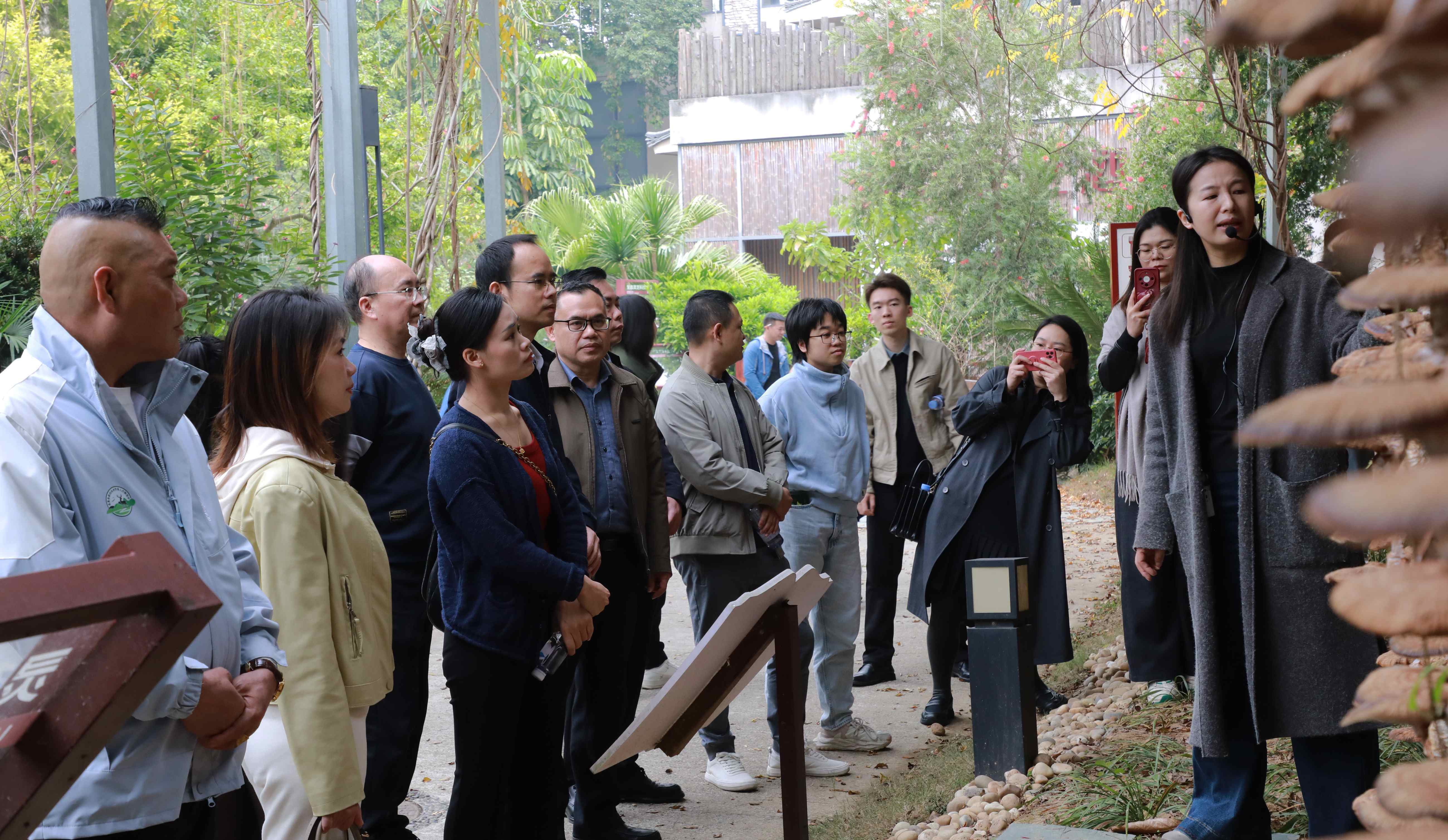 参会人员实地观摩灵芝菌种栽培与加工生产流程
