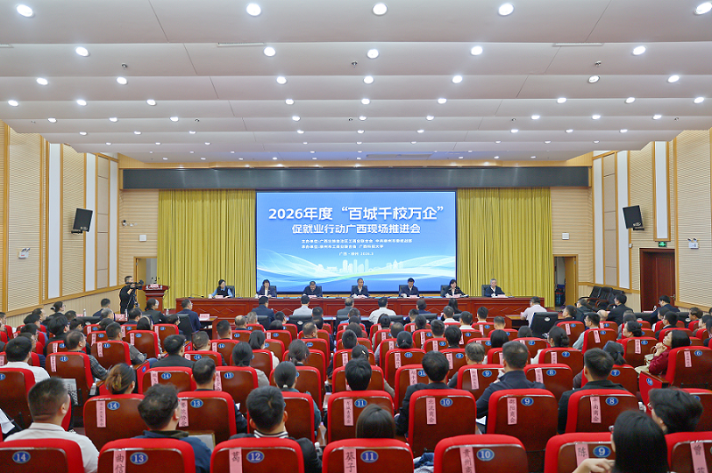 3月26日,由自治区工商联、市委统战部联合主办,市工商联、广西科技大学承办的2026年度“百城千校万企”促就业现场推进会在广西科技大学举办。活动聚焦政校企协同,服务柳州“10+N”现代化工业体系发展需求,助推民营经济高质量发展和青年学子成长就业。