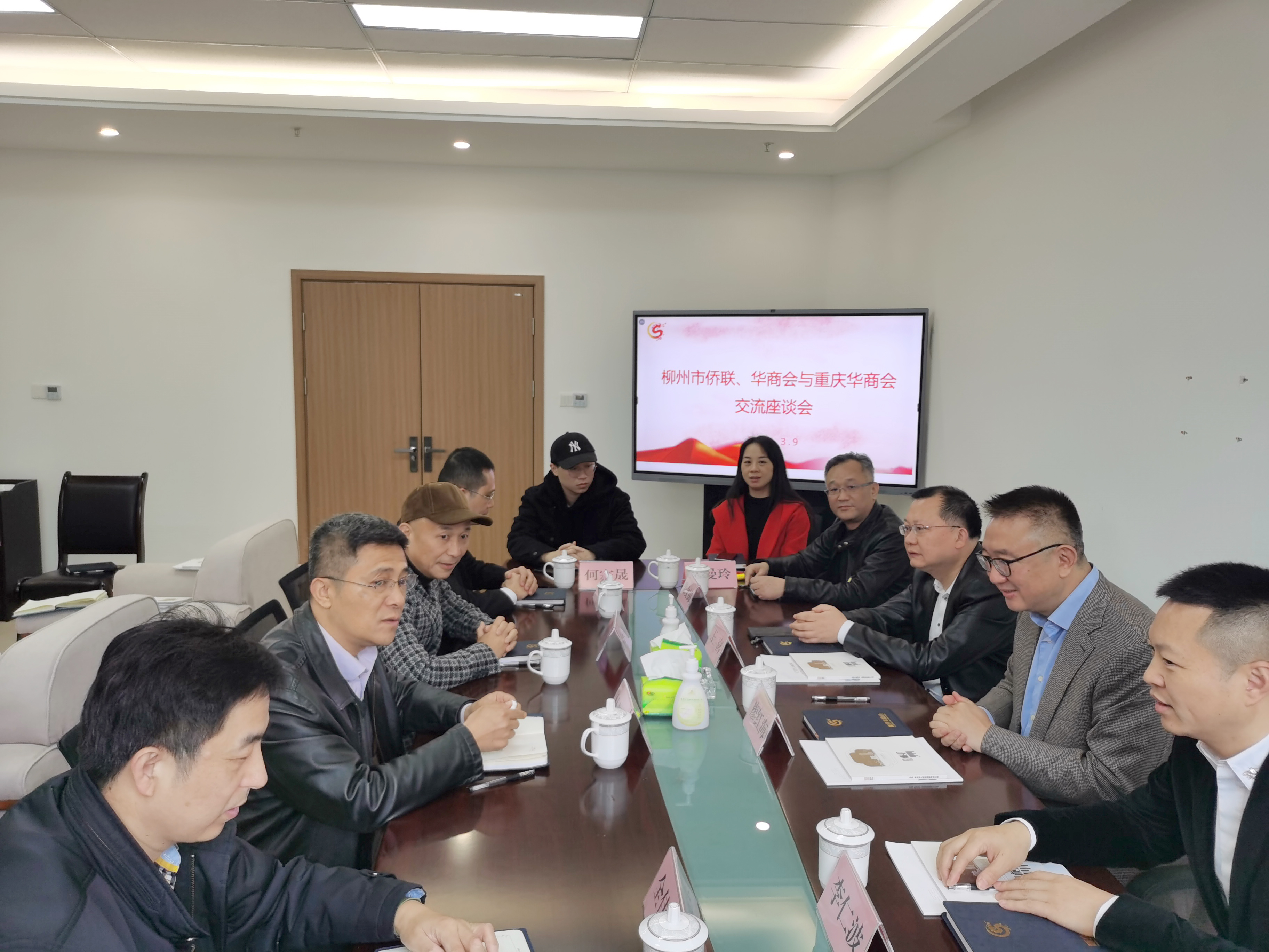 在重庆市,调研组与重庆华商会两地华商围绕各种发展领域展开了交流探讨进行了座谈。杜新权介绍了柳州市“高质量发展”和“工业崛起”战略部署,推介了柳州的营商环境及成本优势。重庆市侨联兼职副主席、华商会常务副会长兼秘书长廖红海在座谈会上表示希望两地商会在经贸、科技、文化、社会等方面进一步加深交流与合作,共同助力两地经济发展。座谈会上,两地华商还就新型建筑材料、新能源开发、文化旅游装备制造等产业达成了初步合作意向。