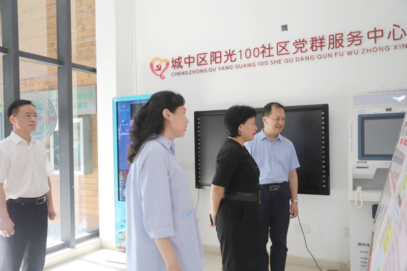 在城中区阳光100社区新侨之家,邓娟娟一行参观了新侨之家场地建设和使用情况,听取了城中区委统战部关于通过新侨之家开展侨务工作的情况汇报。