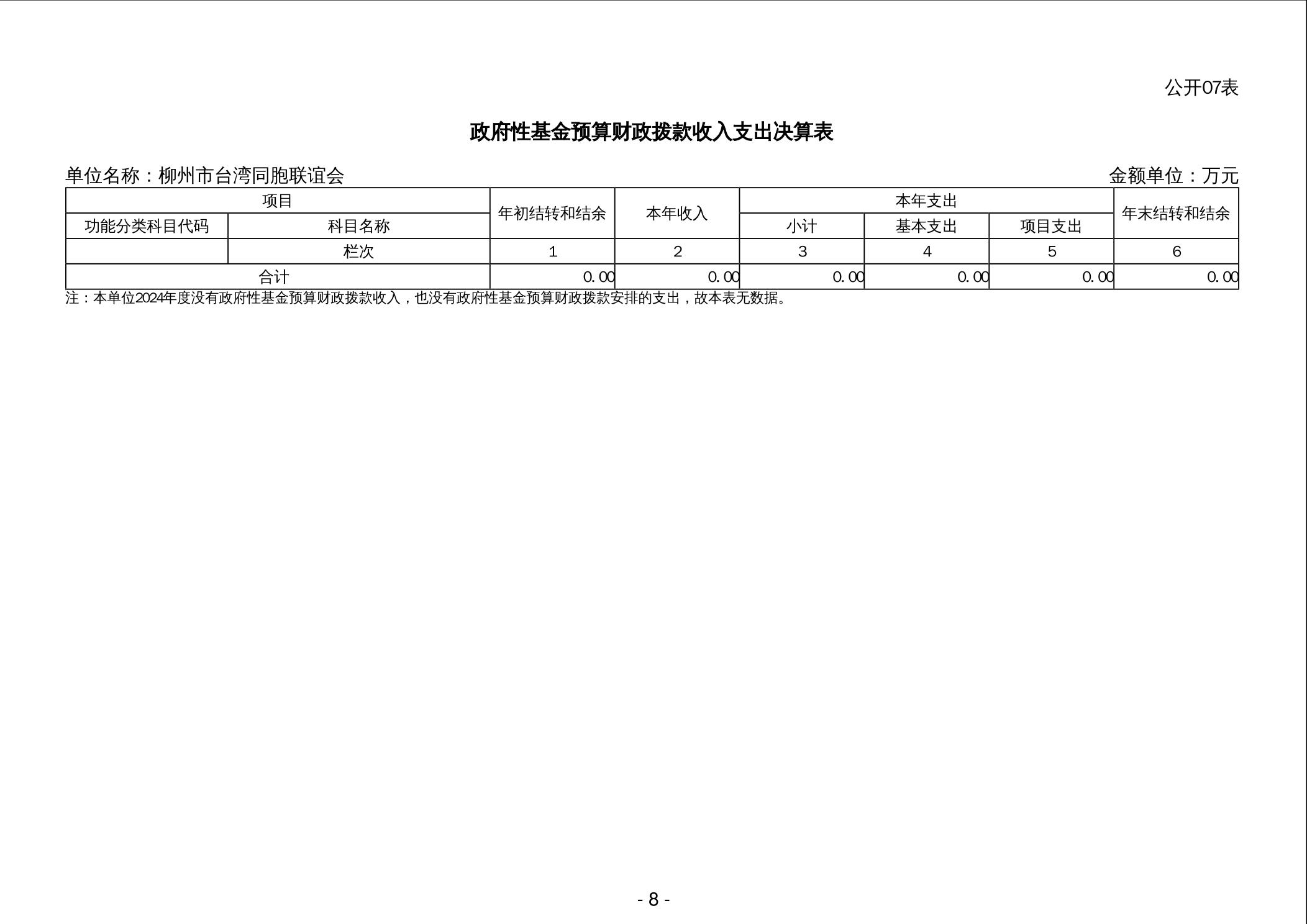 上一篇: 柳州市人民政府台湾事务办公室2024年度单位决算