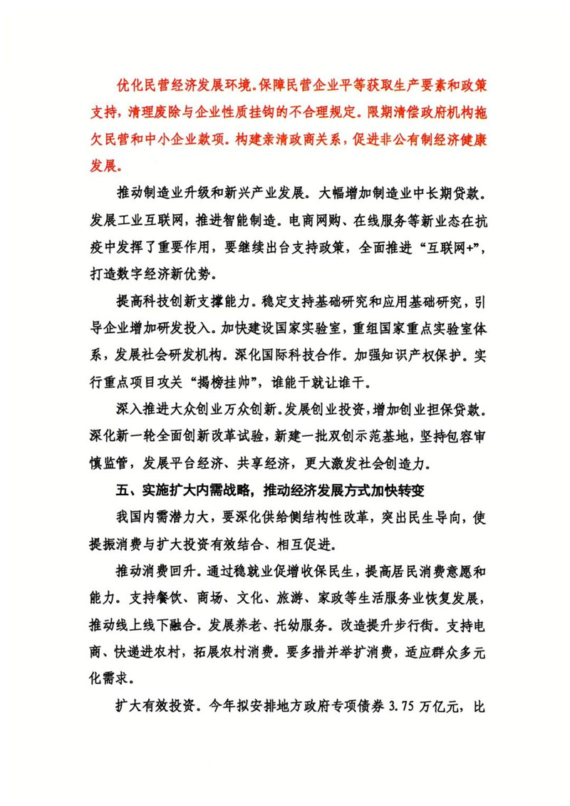 优化民营经济发展环境。保障民营企业平等获取生产要素和政策支持,清理废除与企业性质挂钩的不合理规定。限期清偿政府机构拖欠民营和中小企业款项。构建亲清政商关系,促进非公有制经济健康发展。