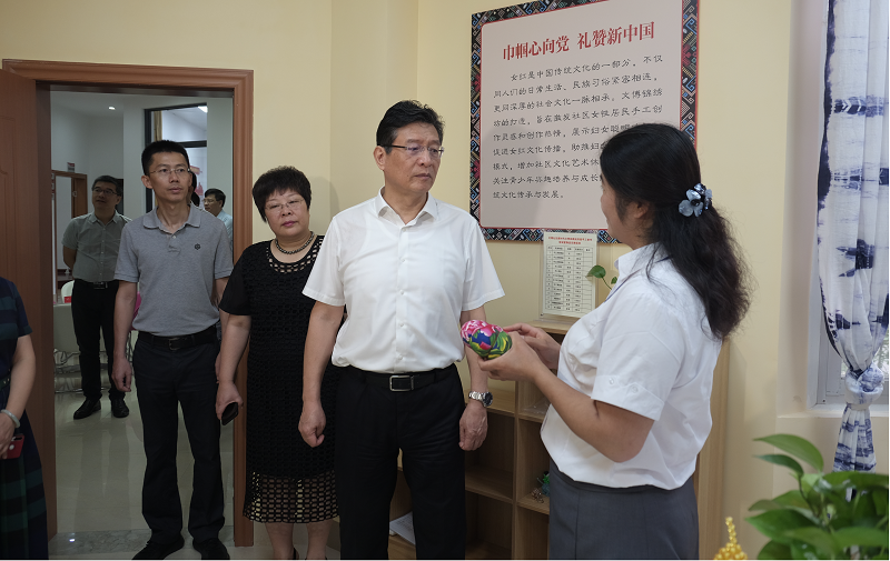 (图为市委书记郑俊康(右二)在文博锦绣坊指导工作)